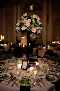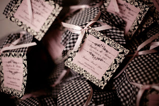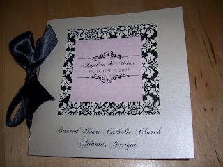 We also did wedding programs, menus, table numbers, favor tags and various signage for her wedding reception theme of black & white damask and baby pink.