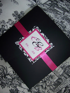 I hit the nail on the head- we’re going with this design exactly! Black pocketfolds, layers of fuchsia and damask with white face & inserts.