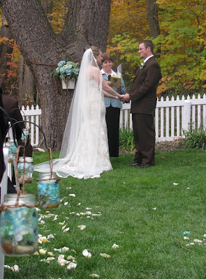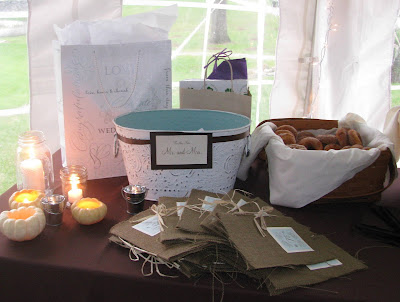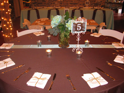 Lauren and Bryan were married on a gorgeous autumn day at Rock Ford Plantation in Lancaster, PA. The ceremony was held on the lawn of the plantation house and the reception followed in a barn on the estate. The mix of aqua hydrangea and shabby-chic touches gave the affair a rustic elegance. Lauren put a ton of thought into every detail and I think it turned out beautifully!Burlap program covers!