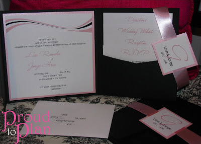 Lisa and Jorge’s Wedding Invitations October 6, 2009 Lisa and Jorge’s invitations turned out great. Contrasting a soft pink layer against black pocketfold and using a contemporary wave design at the top was a nice touch!