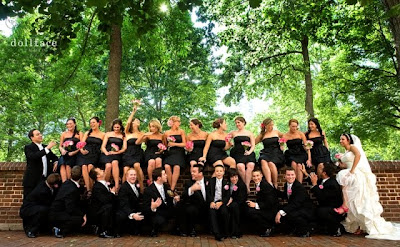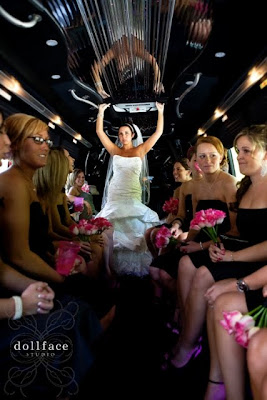 Angela and Matthew’s wedding started off at Saint Augustine Church. As guests arrived to the church, they were greeted by the lovely sounds of bagpiper, Dennis Miller. Cescaphe Ballroom was the perfect venue for their stylish reception. We worked closely with Angela designing stationery to match the pink & damask reception the couple had planned. Eventions provided pinspot lighting on the centerpieces, uplighting around the room, a dance floor wash, a customized monogram logo, as well as a plasma slideshow that ran all night. They also handled the DJ duties and kept the floor packed from the first to the last song! Martin’s Video did a great job, once again, and Leslie from Whimsical Welcomes did a fabulous job on the florals! Festive provided the photobooth, which the guests always enjoy. Meghan Cahill did really unique hair styles for each girl and they looked so beautiful! Dollface Studios was incredible to work with- their photography is so amazing! The photos look great!