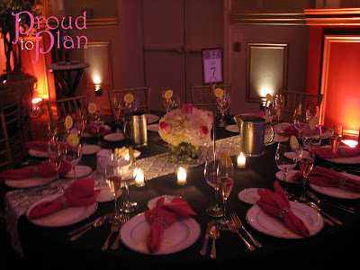 Angela and Matthew’s wedding started off at Saint Augustine Church. As guests arrived to the church, they were greeted by the lovely sounds of bagpiper, Dennis Miller. Cescaphe Ballroom was the perfect venue for their stylish reception. We worked closely with Angela designing stationery to match the pink & damask reception the couple had planned. Eventions provided pinspot lighting on the centerpieces, uplighting around the room, a dance floor wash, a customized monogram logo, as well as a plasma slideshow that ran all night. They also handled the DJ duties and kept the floor packed from the first to the last song! Martin’s Video did a great job, once again, and Leslie from Whimsical Welcomes did a fabulous job on the florals! Festive provided the photobooth, which the guests always enjoy. Meghan Cahill did really unique hair styles for each girl and they looked so beautiful! Dollface Studios was incredible to work with- their photography is so amazing! The photos look great!