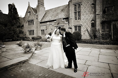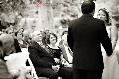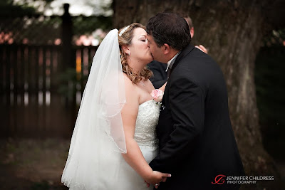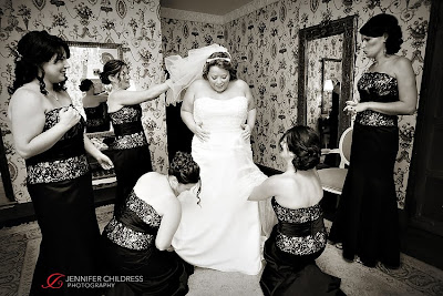 Aldie Mansion was the location for Ginny and Keith’s beautiful ceremony and reception. Natalie Pagano came to the hotel to do all of the girl’s hair and Drop Dead Gorgeous came to do everyone’s makeup. It was so humid this day, but everyone’s hair and makeup stayed in place and looked great! They were married in front of the oak tree on Aldie’s grounds and the ceremony was officiated by The Wedding Pastor, Andy Mahaney. Kenneth Stillman Video was there to capture the day on video. Whimsical Welcomes created the florals and incorporated a lot of great candlelight into the reception centerpieces. There were also a lot of damask touches throughout the wedding. The programs, table runners and a lot of the candles had a damask motif. The reception looked fantastic and the dancefloor monogram provided by Synergetic Sounds and Lighting, really added to the room. Matt and Ed from Synergetic also DJ’ed the evening and got everyone on their feet. The couple chose a photobooth as their favors and also used the photos for their guestbook. Thanks to Extreme Photobooth for providing this! Check out the pictures below given to us by Jennifer Childress Photography. Jenn did a great job getting all of the details that Ginny worked so hard on!