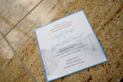 Angela and Stephen came to us for their wedding invitations. We used her palette of powder blue and butter yellow and created a really cute layered invitation. Inspired by the path to their ceremony spot, we used a beachy graphic behind the text of the invite, then featured a monogrammed belly band to keep all the inserts organized. Many thanks to Rob from Humbled Eyes Photography for these awesome pics!