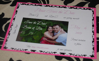 Erin and Brian’s Save The Dates September 8, 2008 Erin and Brian chose a great pink and black panel card to show off their custom reminder magnets!
